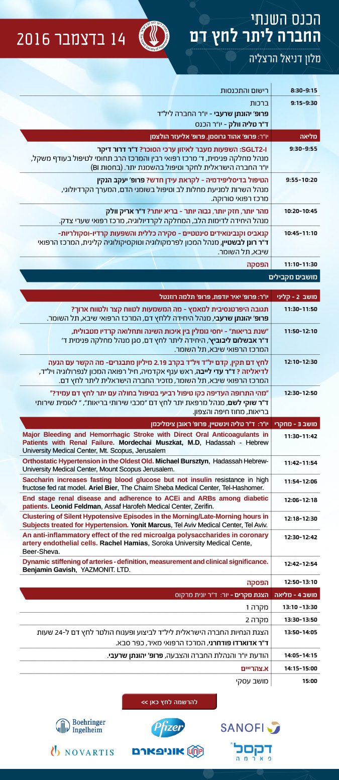 אנו מזמינים אתכם להשתתף בכנס השנתי של החברה ליתר לחץ דם.