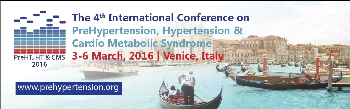We are pleased to inform you that The 4th International Conference on Prehypertension, Hypertension and Cardio Metabolic Syndrome (PreHT, HT & CMS 2016) will be held in Venice, Italy on 3-6 March, 2016.