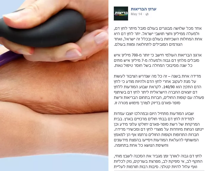 שבוע המודעות ליתר לחץ דם – כתבו עלינו בתקשורת