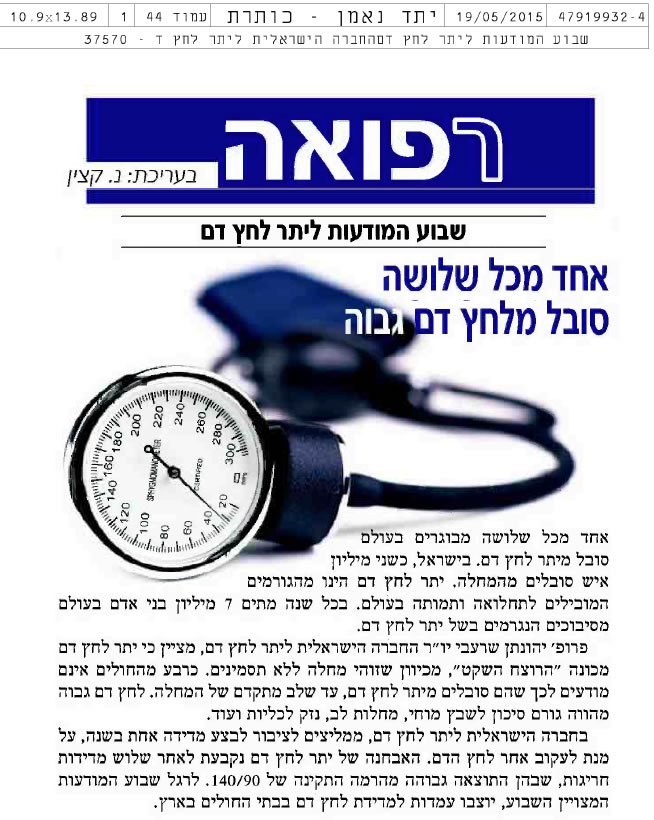 ראשי » מידע לקהל » שבוע המודעות ליתר לחץ דם – כתבו עלינו בתקשורת